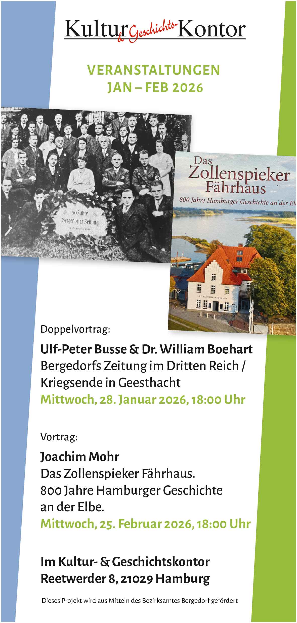 Am südlichsten Punkt des heutigen Hamburgs, direkt an der Elbe, liegt das Zollenspieker Fährhaus. Blutige mittelalterliche Kämpfe, berühmte Gäste, Zölle und Schiffe, europaweiter Handel, prunkvolle Feste, dramatische Fluten – der Ort war 800 Jahre lang ein bedeutendes Zentrum von Handel, Macht, Genuss und Kultur. Die Vortragsveranstaltung bettet die Geschichte des Zollenspieker Fährhauses in die Geschichte Hamburgs und Norddeutschlands ein.